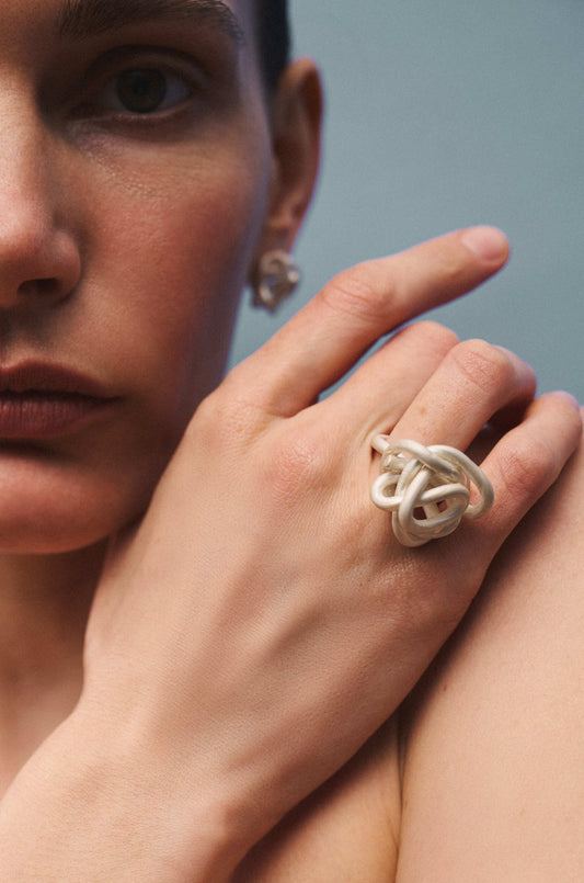Each piece carries the imprint of the hands that shaped it. Wax molded by touch, cast into silver, preserving every subtle imperfection. No molds. No replicas. Just the quiet unpredictability of raw material finding its form.